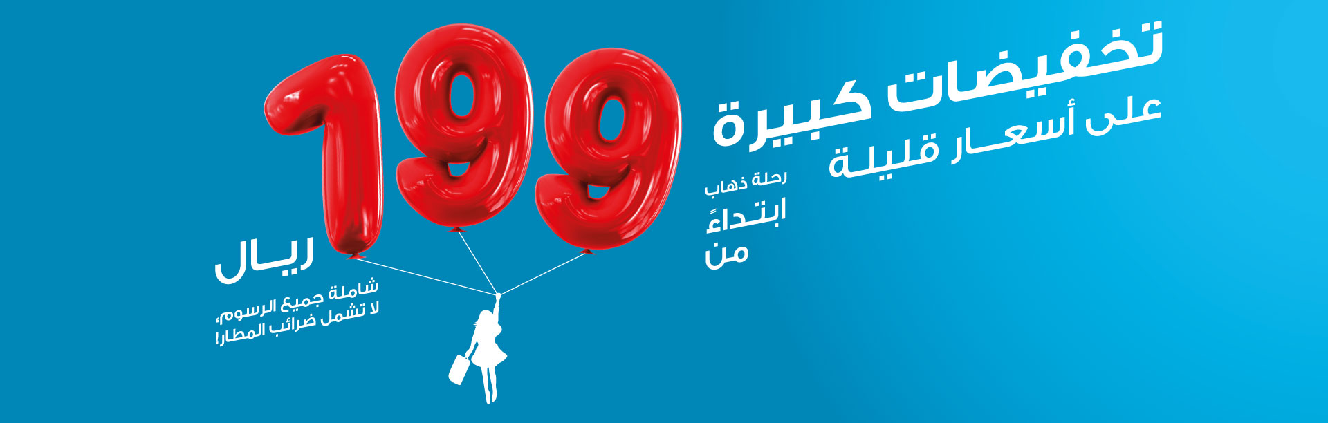 نعلن عن تخفيضات كبيرة إلى وجهات مختارة ابتداء من 199 ريال * فقط. حدد مطارك أدناه واحجز رحلتك الآن بسعر مخفض للغاية! هذه الأسعار لن تدوم طويلا