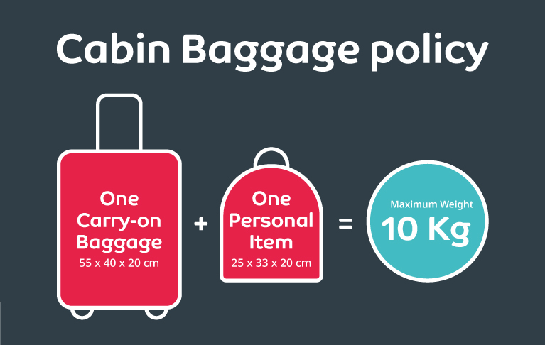 All our fare types include free cabin baggage subject to the following weight, size, and number of piece restrictions: