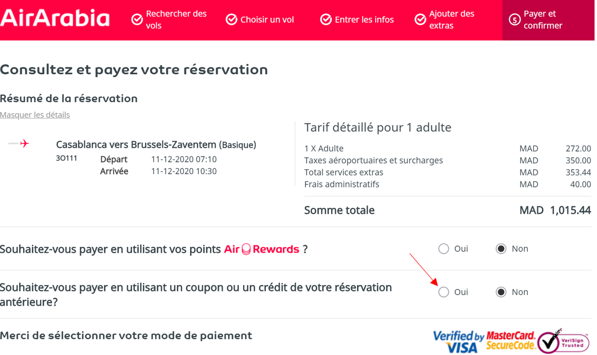 - Ils créeront la réservation et vous guideront pour le paiement du montant restant. Si le montant du crédit est suffisant pour payer la totalité du montant, vous pourrez réserver le vol sans aucun autre paiement.