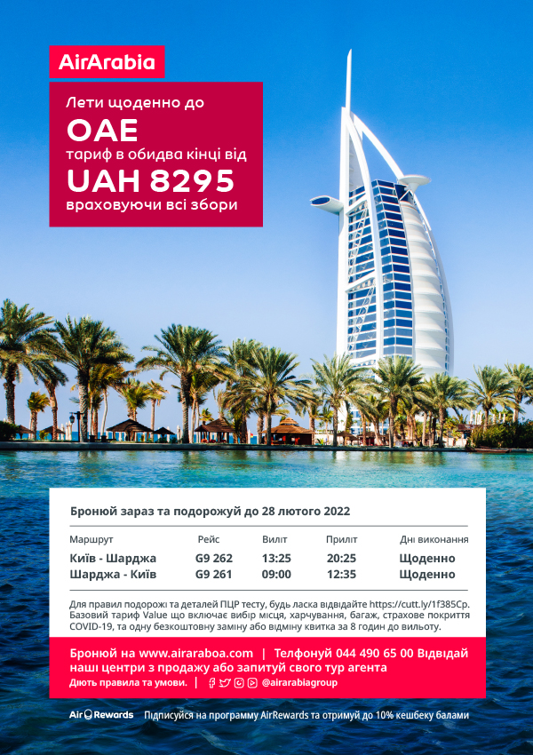 c лети щоденно в ОАЕ ще дешевше | Air Arabia
