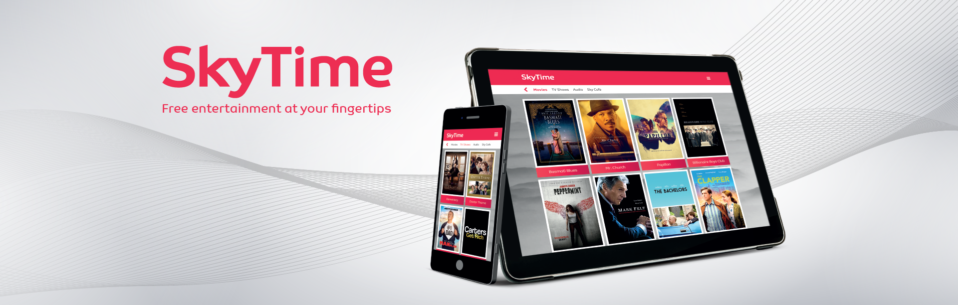 Sky Time'a Hoşgeldiniz : Air Arabia'nın ücretsiz ve geniş çeşitlilik sunan uçak içi eğlence sistemine kendi tablet, laptop ve cep telefonunuzla bağlanabilirsiniz.